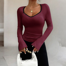 Camiseta de manga larga para mujer Kai Kuo para Otoño Invierno 2025 Color sólido forrado Y2K Spice Girls diseño Europa América transfronterizo