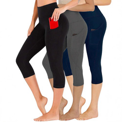 Pantalones de Yoga ajustados de cintura alta sólidos para mujer con bolsillo transpirable Spandex/tela de poliéster diseño de siete puntos para Fitness