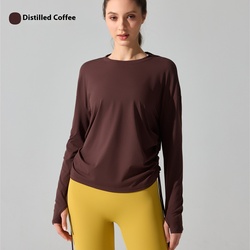 เสื้อพิลาทีสแขนยาวเชือกรูดแบบหลวมสำหรับผู้หญิงแนวยุโรปและอเมริกันระบายอากาศได้ดีสำหรับฤดูใบไม้ร่วงเล่นกีฬาฟิตเนส